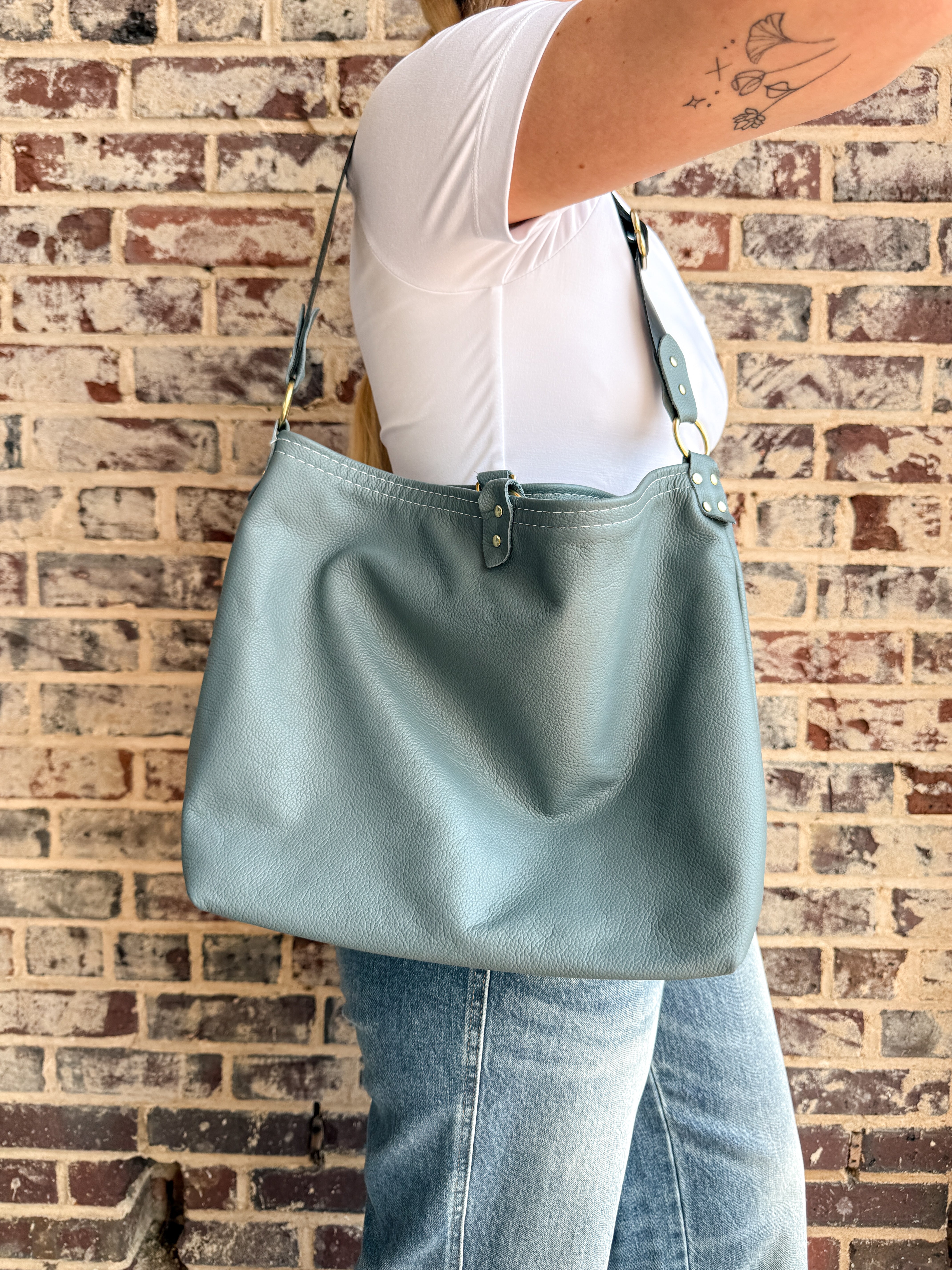 Our leather handbags are all handmade + sustainable using leather scraps and partial hides from the NC upholstery industry. Our no waste business model goes towards doing our part to reduce the waste in the industry.