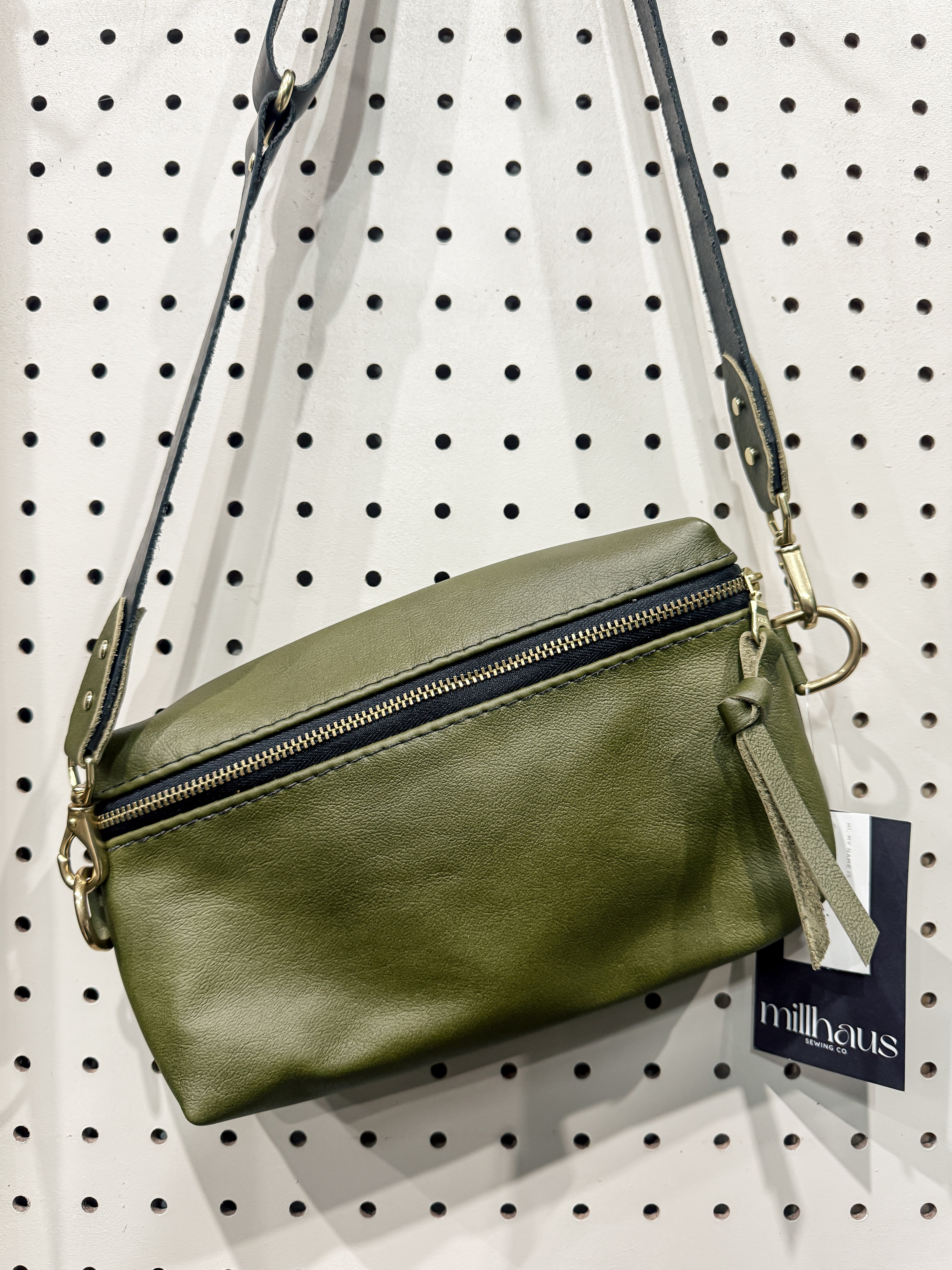 Our leather handbags are all handmade + sustainable using leather scraps and partial hides from the NC upholstery industry. Our no waste business model goes towards doing our part to reduce the waste in the industry.