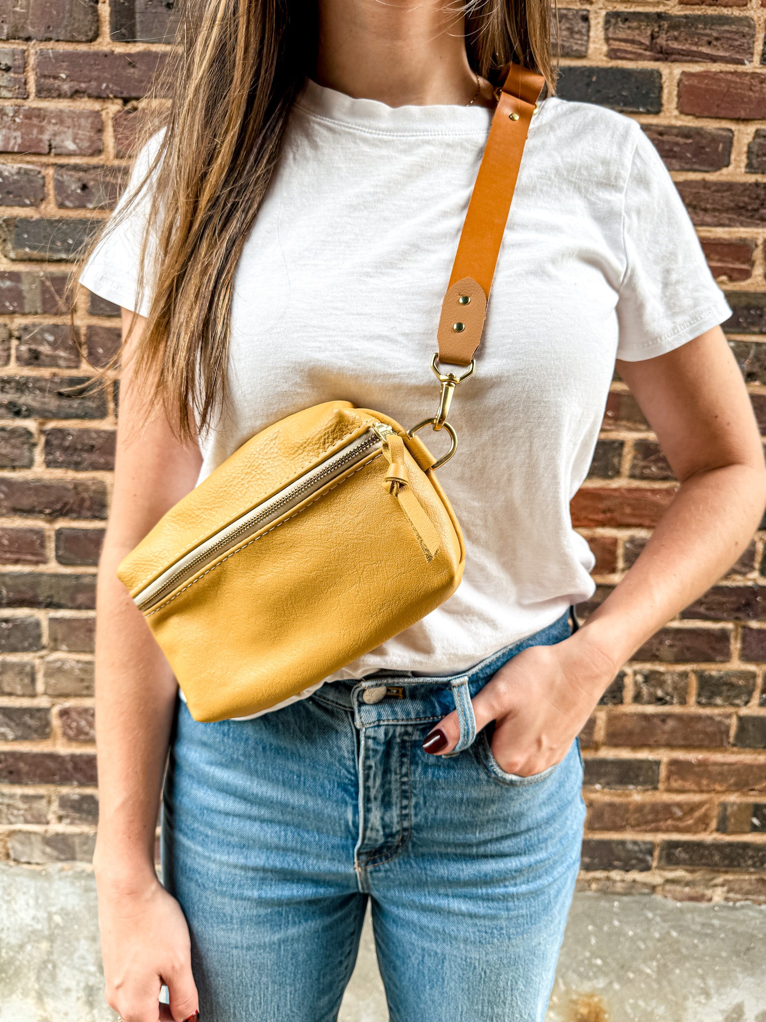 Our most popular leather sling bag - leather may vary due to genuine leather hide.