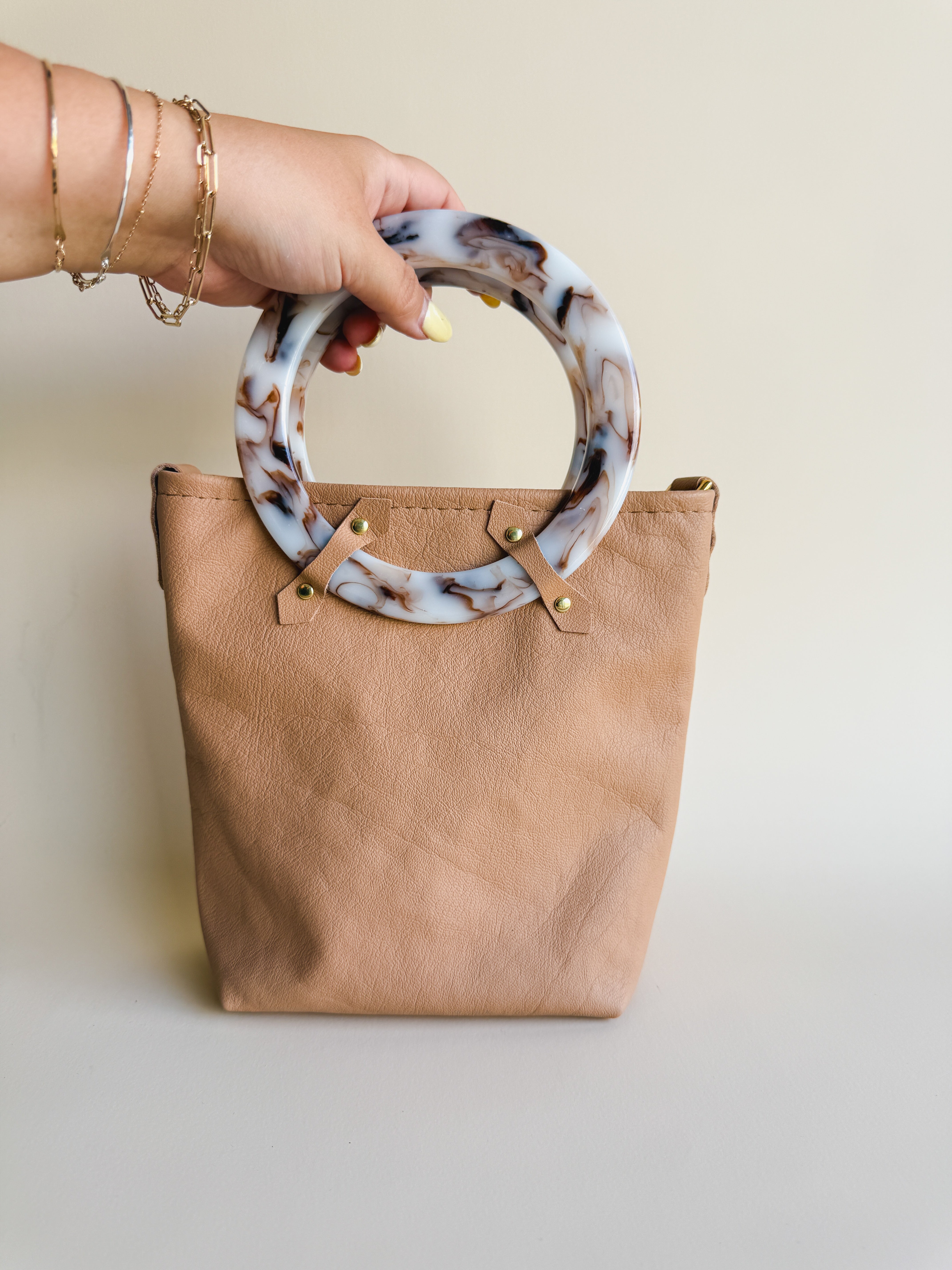 Our leather handbags are all handmade + sustainable using leather scraps and partial hides from the NC upholstery industry. Our no waste business model goes towards doing our part to reduce the waste in the industry.